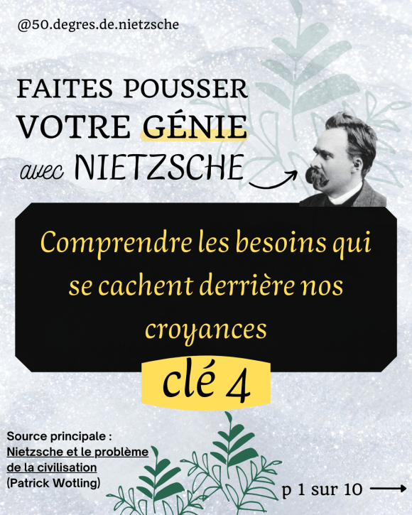 Pour reprendre la métaphore végétale utilisée dans les 2 premières Clés, on pourrait donc parler, dans un contexte nietzschéen, de « plante-croyance » : si l’on se représente une croyance comme une plante, nous pouvons alors dire qu’à la racine de toute croyance que nous avons, il y a des besoins que l’on cherche à satisfaire.
