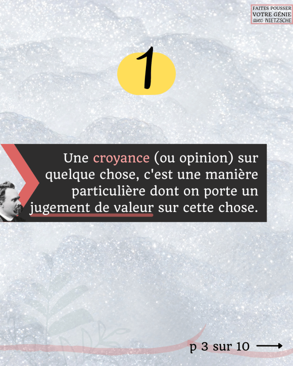- Une croyance (ou opinion) sur quelque chose, c’est une manière particulière dont on porte un jugement de valeur sur cette chose.