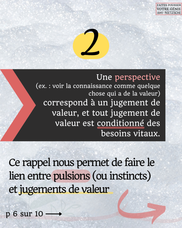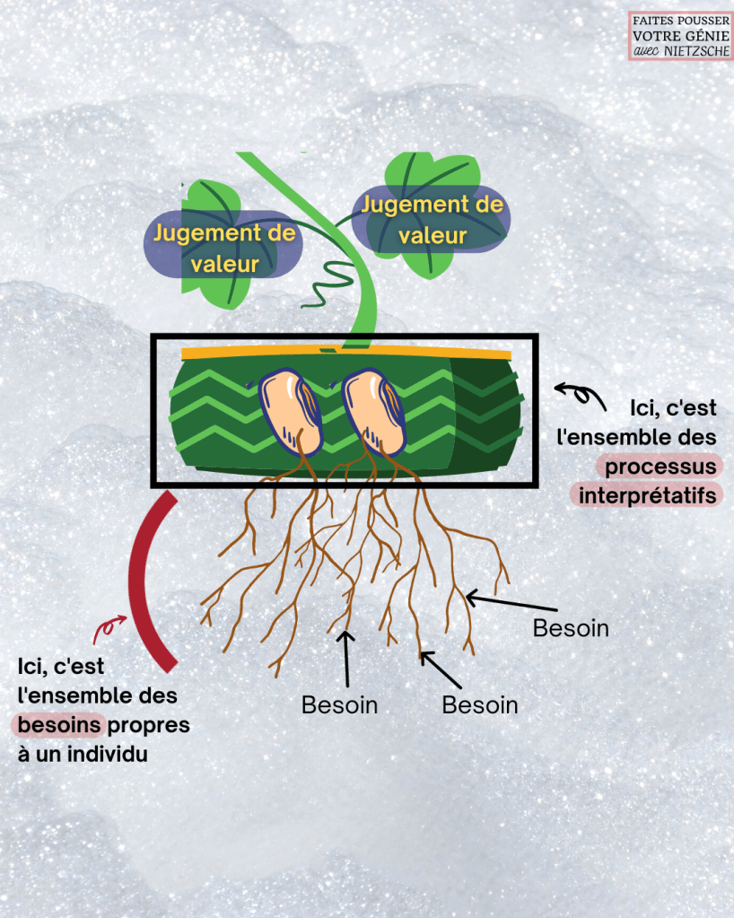 Nous avons aussi vu qu’un jugement de valeur (ou perspective) est toujours le résultat de processus interprétatifs, et que ces mêmes processus sont dirigés par des besoins vitaux.
