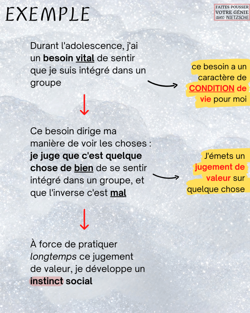 de quel besoin vient mon instinct dominant ? est-ce un besoin qui traduit une surabondance de vitalité, de force OU est-ce un besoin qui traduit un appauvrissement de force, un désir d’éviter tout inconfort et toute résistance ?