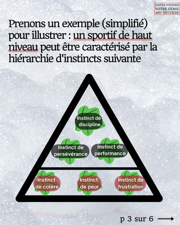 Prenons un exemple (simplifié) pour illustrer : un sportif de haut niveau peut être caractérisé par la hiérarchie d’instincts suivante